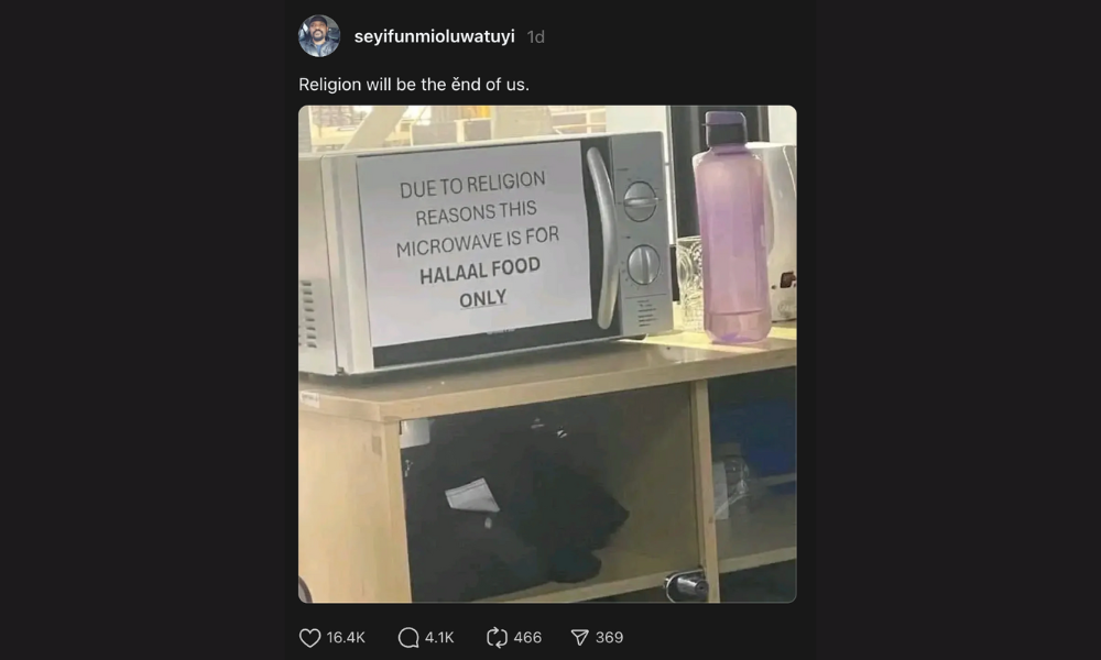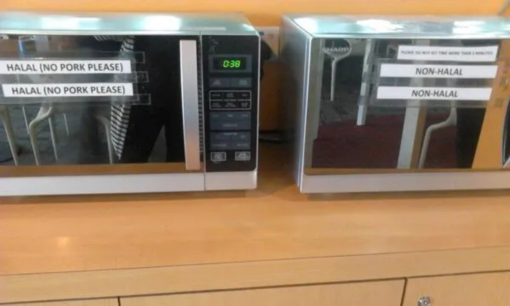 A social media post on Thread recently sparked a complex discussion among netizens following a photo of an office microwave labelled as halal food only due to religious reasons.