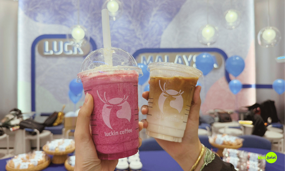 Ketika pelancaran cawangan Luckin Coffee SkyAvenue, Kinihalal berpeluang mencuba dan menilai sendiri keenakan Grape Cloud Frappe dan Toffee Hazelnut Latte.