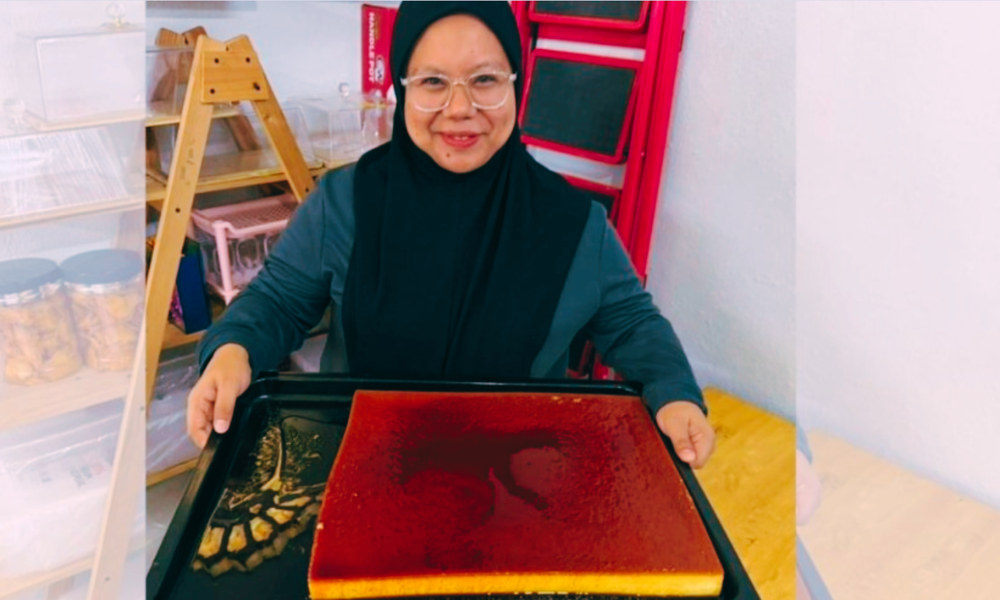 Hazwani turut membuat puding karamel Khairul Aming yang tular di media sosial. (kredit foto: Bernama)