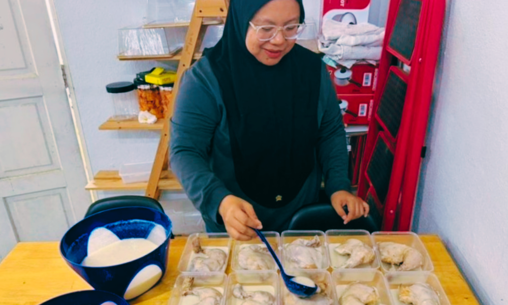 Hazwani menyediakan 40 pek ayam sos plum untuk dijual. (kredit foto: Bernama)