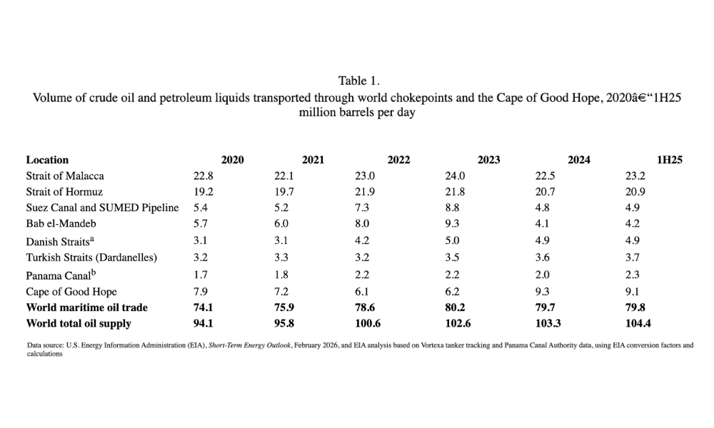 Sumber rasmi EIA: U.S. Energy Information Administration — World Oil Transit Chokepoints
