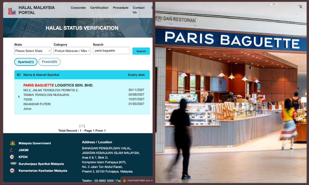 Kinihalal’s check on Halal Malaysia Portal reveals that Paris Baguette is halal-certified by JAKIM.