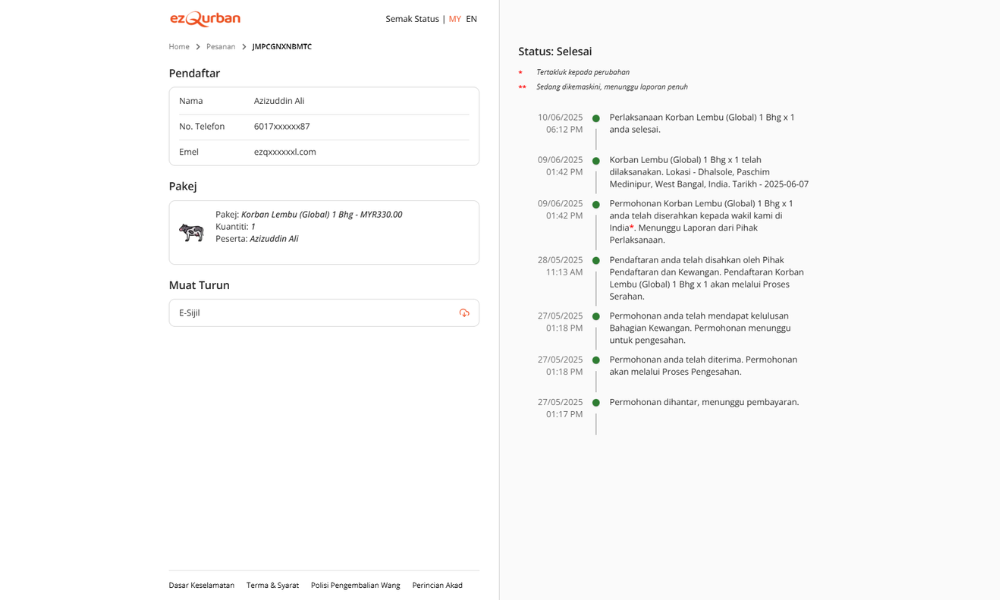 Sistem digital EZ Qurban memudahkan peserta untuk mengesan daging agihan pada masa nyata, semua maklumat di hujung jari.