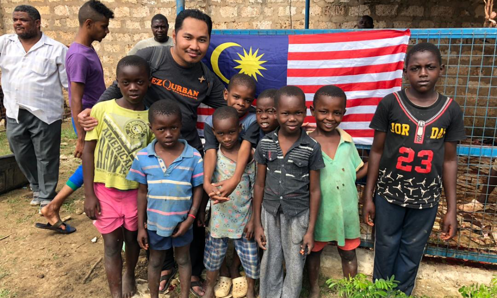 Amirul bersama anak-anak penerima daging korban melalui EZ Quran di Mombasa, Kenya.