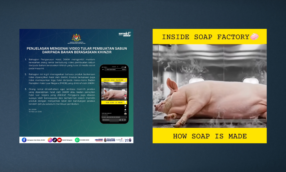 Ia susulan sebuah video berdurasi 3:03 minit di media sosial yang memaparkan cara-cara pembuatan sabun menggunakan bahan berasaskan khinzir, sekali gus mencetuskan keresahan orang ramai berkenaan video terbabit.